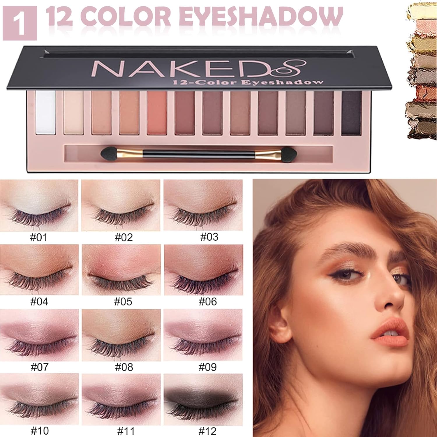 - 💄ALL IN ONE MAKEUP KIT FOR GIRLS - This makeup kits for women contains: 12 colors matte shimmer eyeshadow palette (pink), 2# foundation, 3Pcs liquid lipstick, 2-color compact powder, 3 color blush palette, mascara, brow soap, winged eyeliner stamp, foundation brush and 2Pcs makeup sponges(skin and brown color). The professional make up set is perfect for makeup artists or beginners achieving a full-face flawless look.