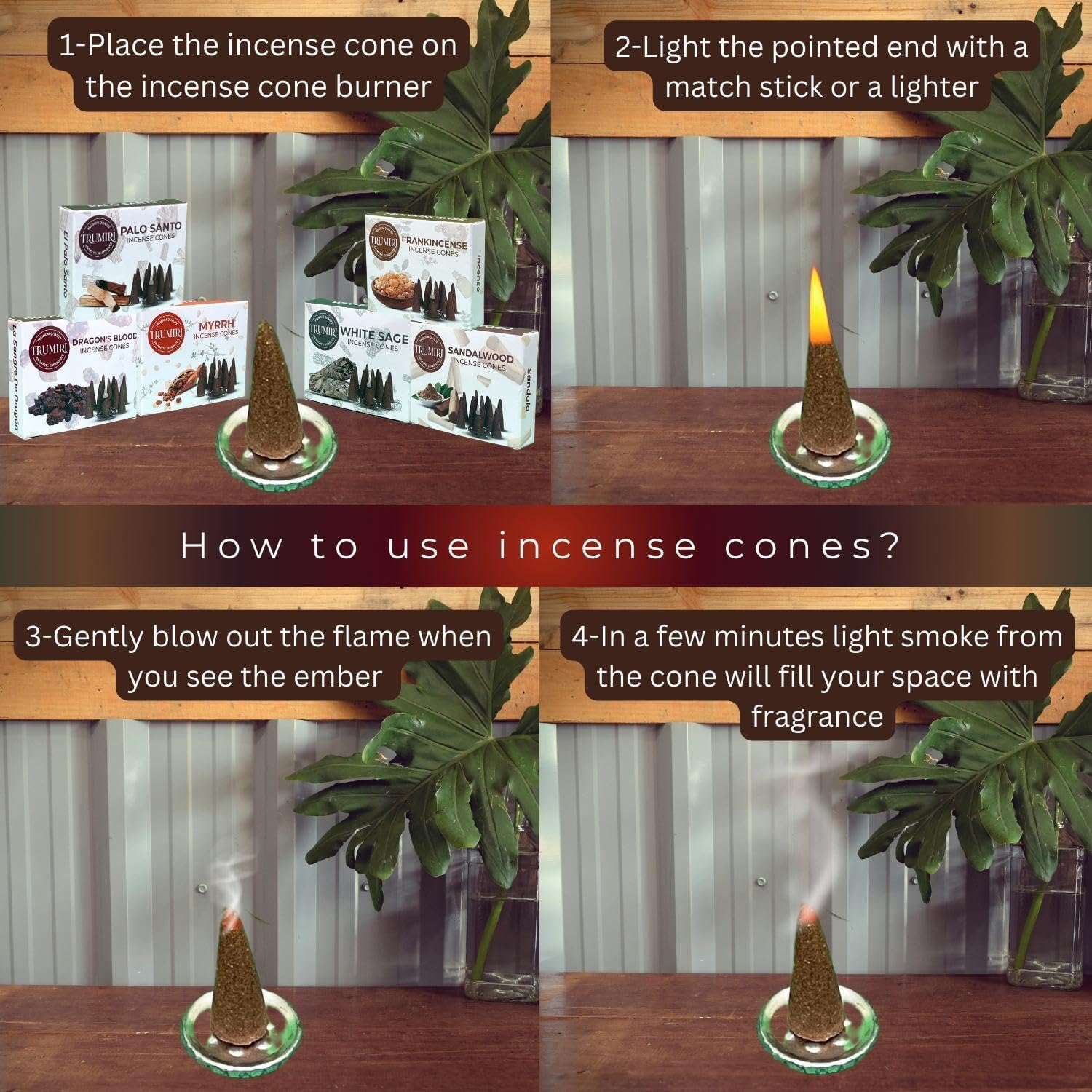 - Natural Ingredients: Made from essential oils and all-natural materials, our organic incense cones ensure a pure and clean burning experience.