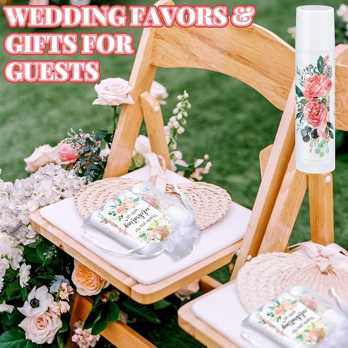 - Thoughtful Wedding Gift Design: these lip balms come with the words 'Our Love is the Balm', ingredient details, and a stylish pattern of Eucalyptus leaves; Matching with white organza bags and thank you tags, making them a classy and heartfelt way to show your gratitude to your guests