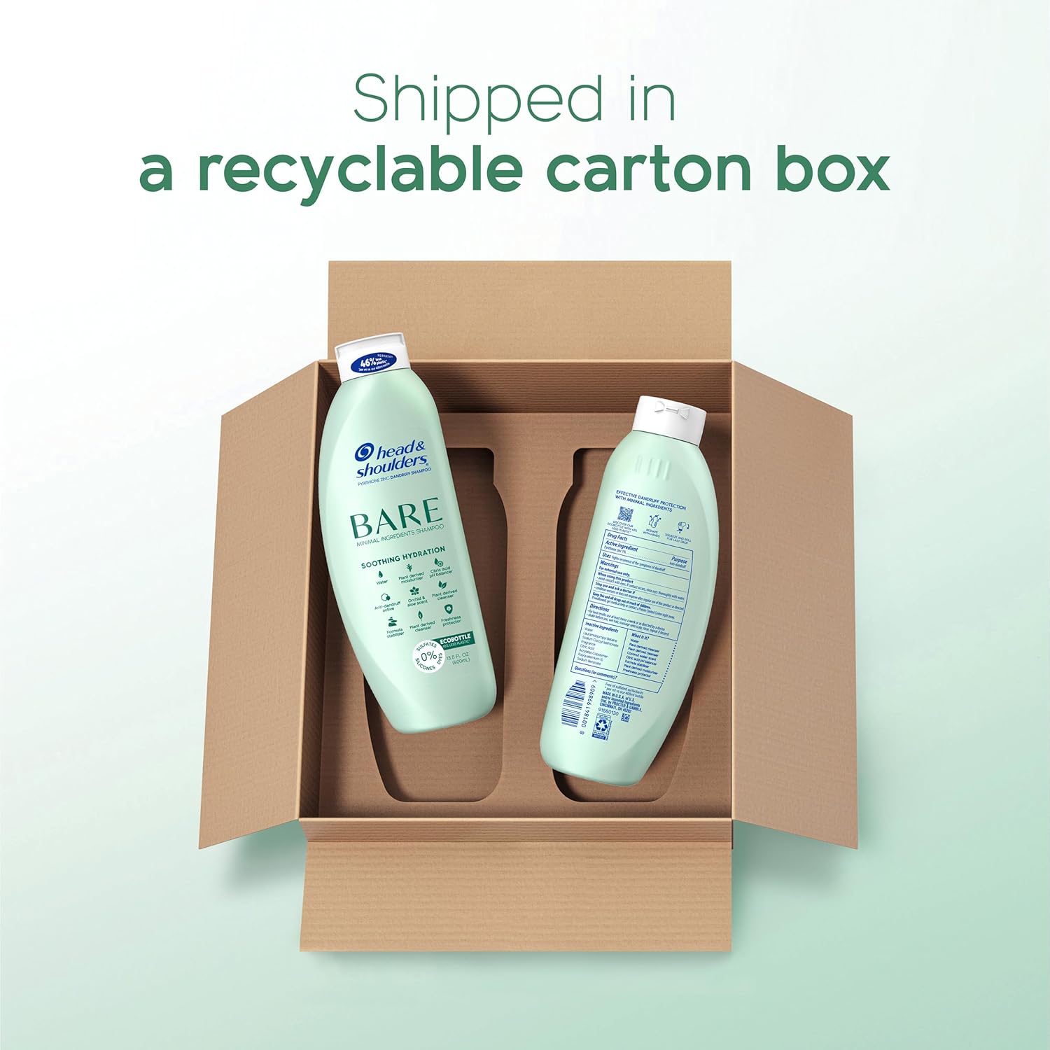 Head & Shoulders BARE Dandruff Shampoo Twin Pack, Soothing Hydration, Sulfate-Free, Silicone-Free, Dye-Free, Eco-Friendly Bottles, Safe for All Hair Types, 13.5 Fl Oz Each (Set of 2)