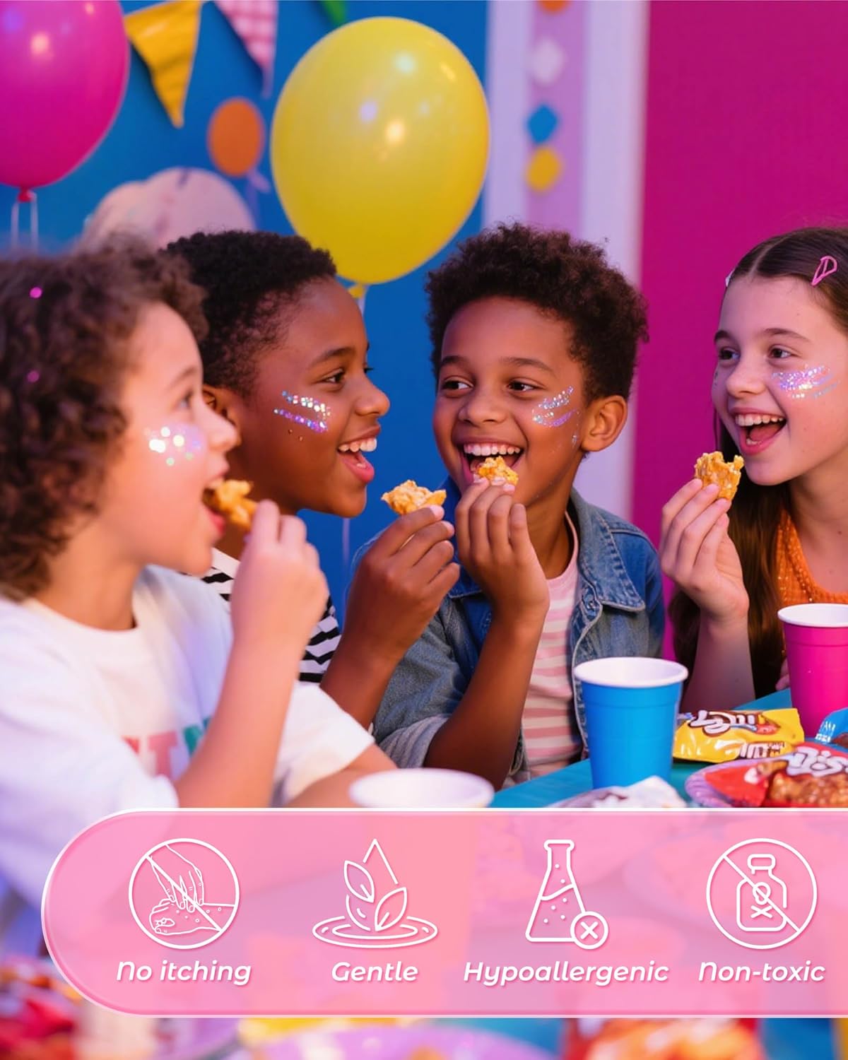 - VEGAN, SAFE & GENTLE: Hypoallergenic, and cruelty-free ingredients, our Clear White Face Glitter Gel is safe for all ages—even kids! It glides on comfortably without irritating skin and washes off easily with soap and water. Party with peace of mind