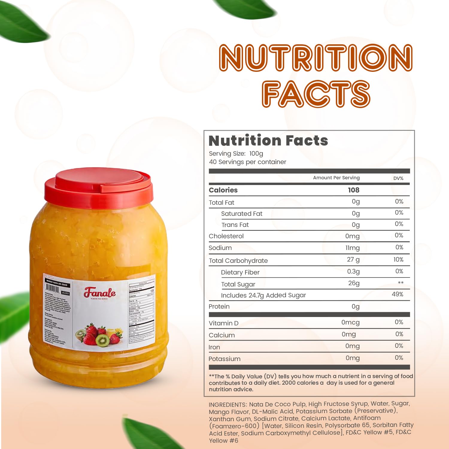 - 𝐒𝐰𝐞𝐞𝐭 𝐚𝐧𝐝 𝐄𝐱𝐨𝐭𝐢𝐜 𝐅𝐥𝐚𝐯𝐨𝐫: Each Fanale coconut jelly boba tea variety is infused with sweet and exotic flavors that complement a range of recipes. This nata de coco jelly topping includes strawberry, lychee, blueberry, mango, sakura, green apple, coconut, Konjac, and coffee flavors, adding a distinct and delightful twist to your creations.