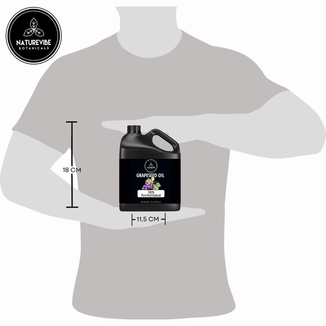 - πΉ Naturevibe Botanicals Grapeseed Oil 32 Ounces Cold Pressed 100% Pure & Natural, Hydrating Oil for Hair, Nail & Skin, Non-Greasy Face and Body Moisturiser (946 ml)