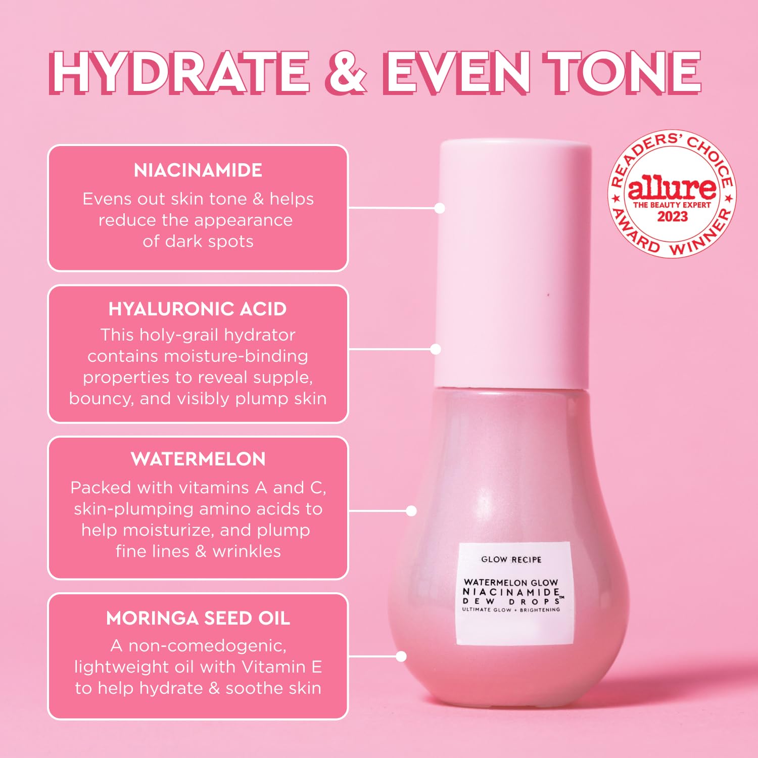 Glow Recipe Stocking Stuffer Niacinamide Serum Dew Drops Ornament - Hydrating Face Serum & Illuminating Makeup Primer for Dewy, Glass Skin + Hyaluronic Acid for Plumping & Highlighting (15 ml)