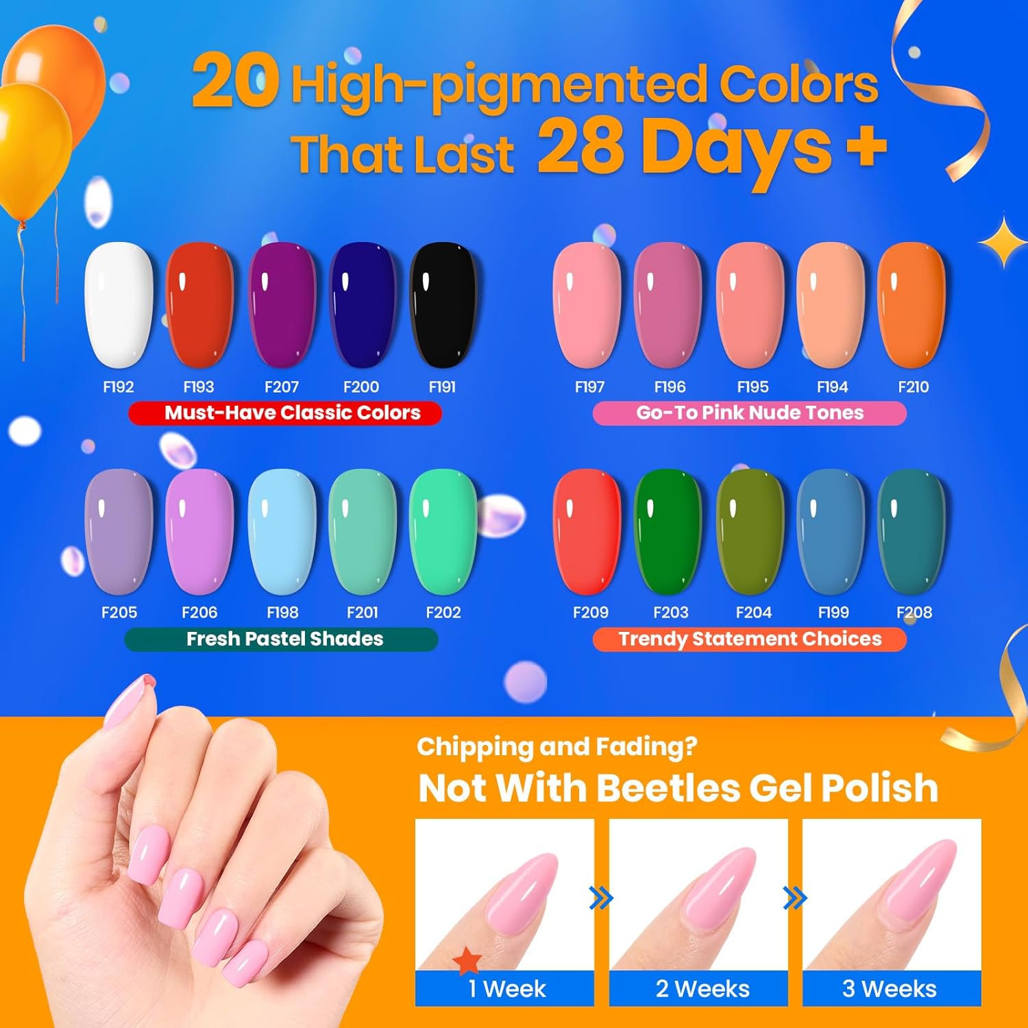 - Ideal Gift For Girl&Women :If you are looking for birthday, anniversary, Valentines Day, Christmass Day gifts for your family or friends, the beetles gel nail kit will be a good choice.Warm Notice : Nail gel polish has different color differences in different light sources, displays and coatings.When you encounter any problems, please feel free to contact us.
