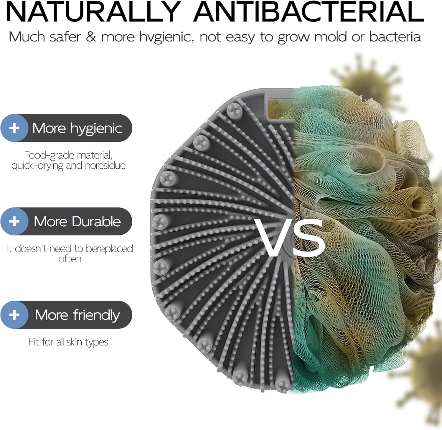 - UPGRADED DESIGN: QiaKeoo silicone body scrubber is designed for maximum effectiveness and comfort, features an innovative silver-infused design, providing you with an enhanced bathing experience.