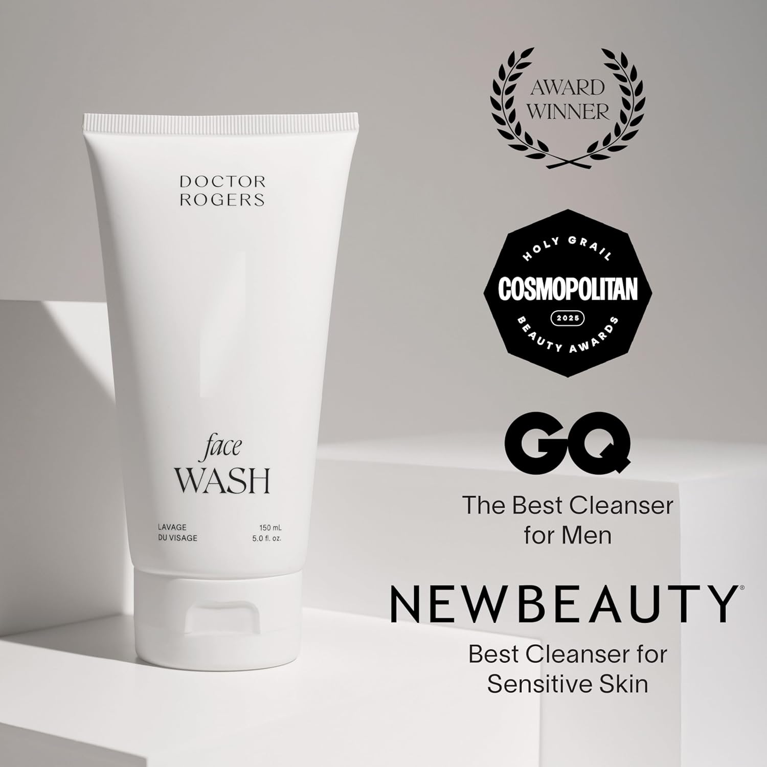 Doctor Rogers Face Wash. Gentle Hydrating Daily Cleanser for Sensitive, Dry & Combination Skin, 5 Ounce (150 ml) Tube
