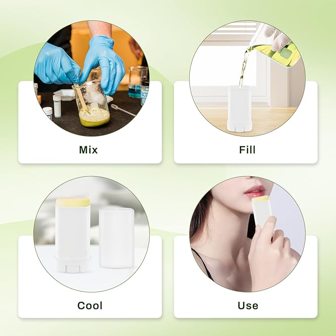 - Widely Use:Great for DIY deodorant,lip balm,lipstick,lotion bar,moisturizer,sunscreen,crayons,chalk,butter/margarine dispenser,solid detergent roller and other cosmetic crafts.