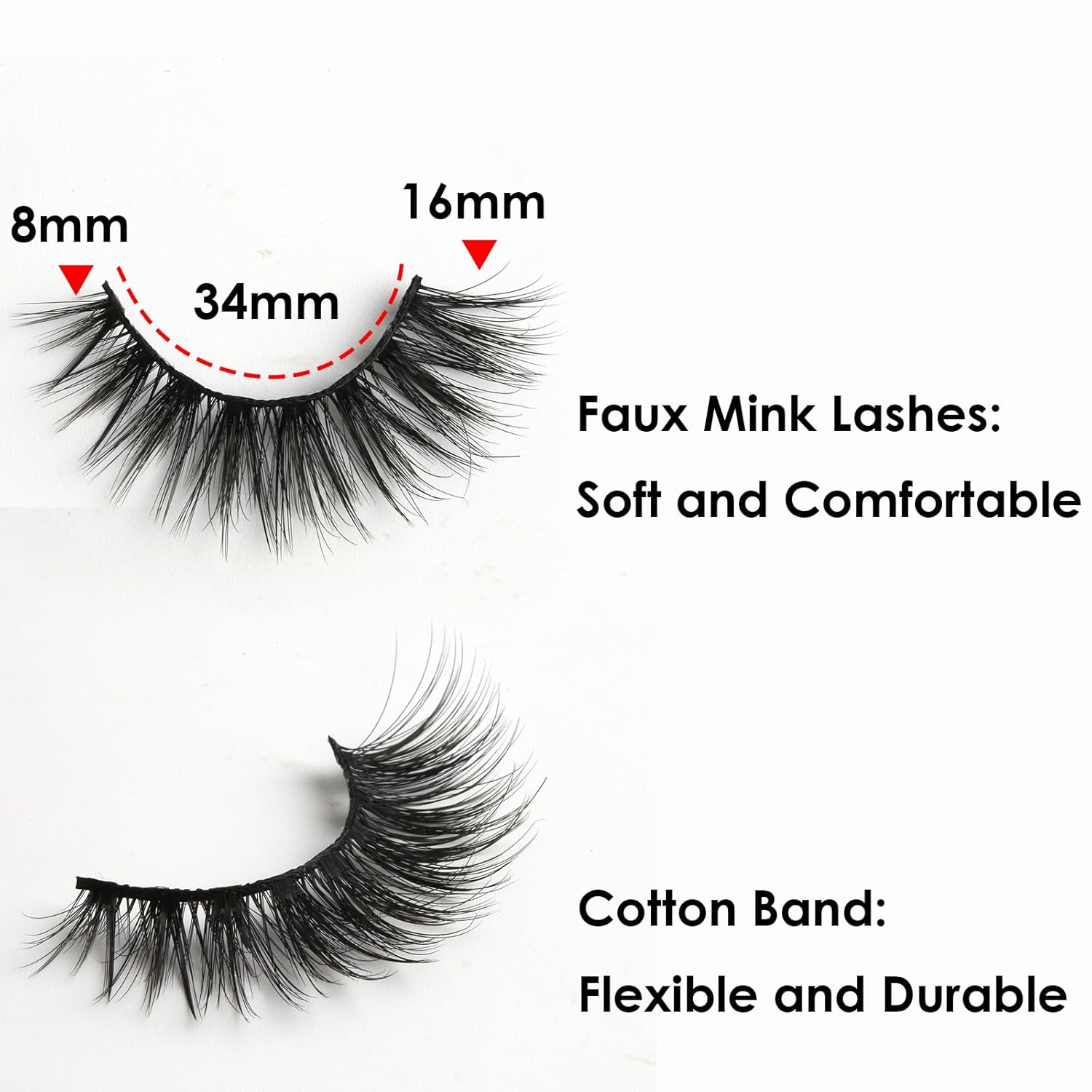 - Comfortable Band - With the thin band, the lashes can be soft & ligheweight, bring you comfortable wearing experience. No burden to makeup. 34mm flexible and durable band can be trimed easily to suit your eye. The lashes can be reused with proper care.