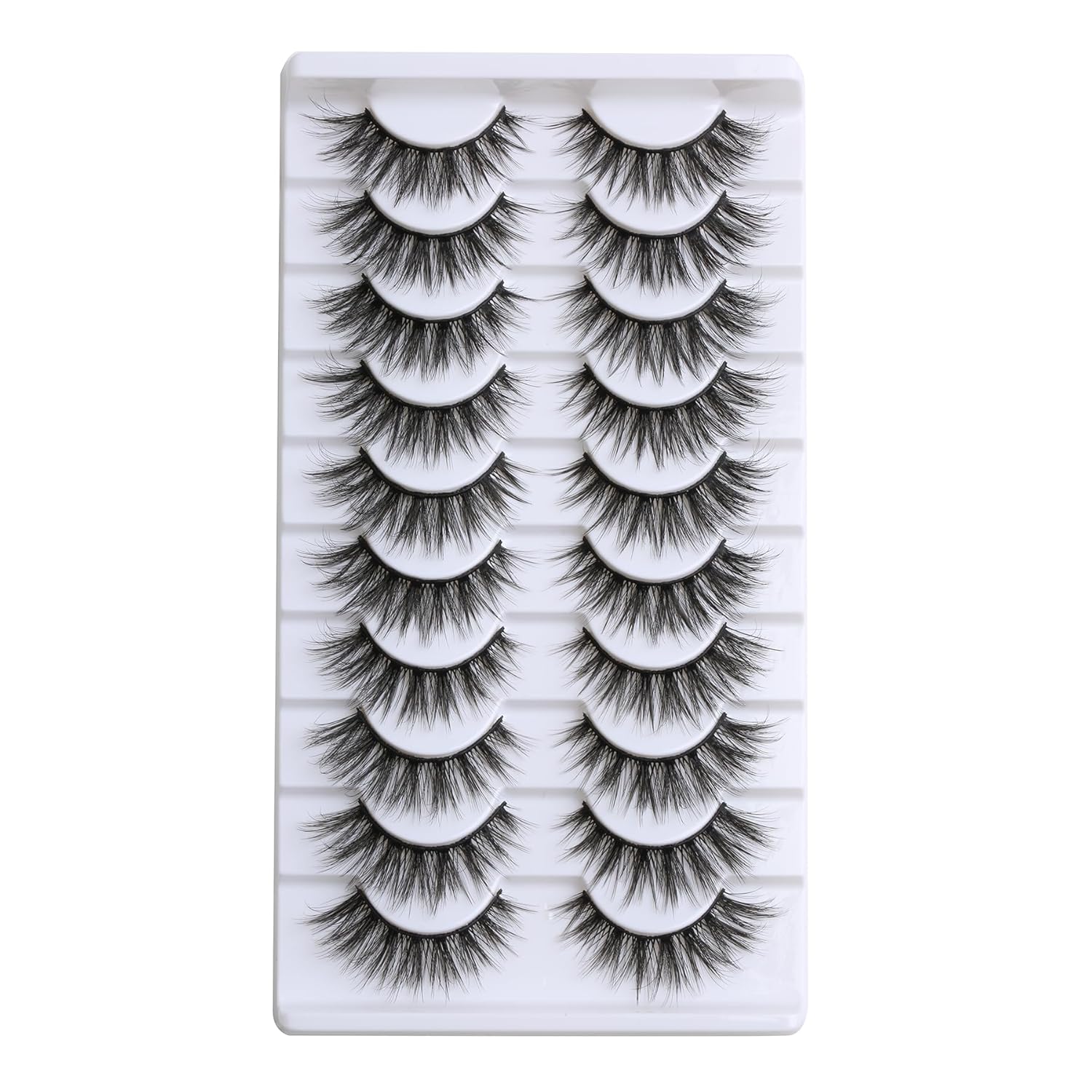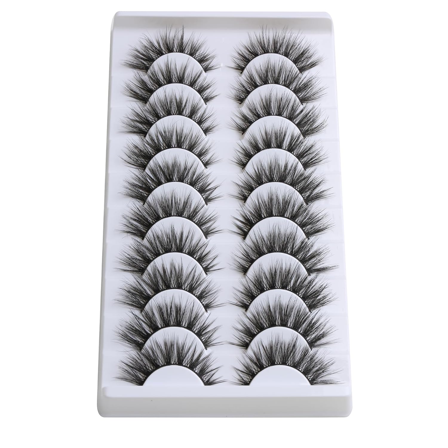SUNWELL False Eyelashes 16mm Mink Lashes Cat Eye Lashes Strips 8D Fluffy Faux Mink Lashes Soft Wispy Luxury Volume Fake Lashes 10 Pairs Pack