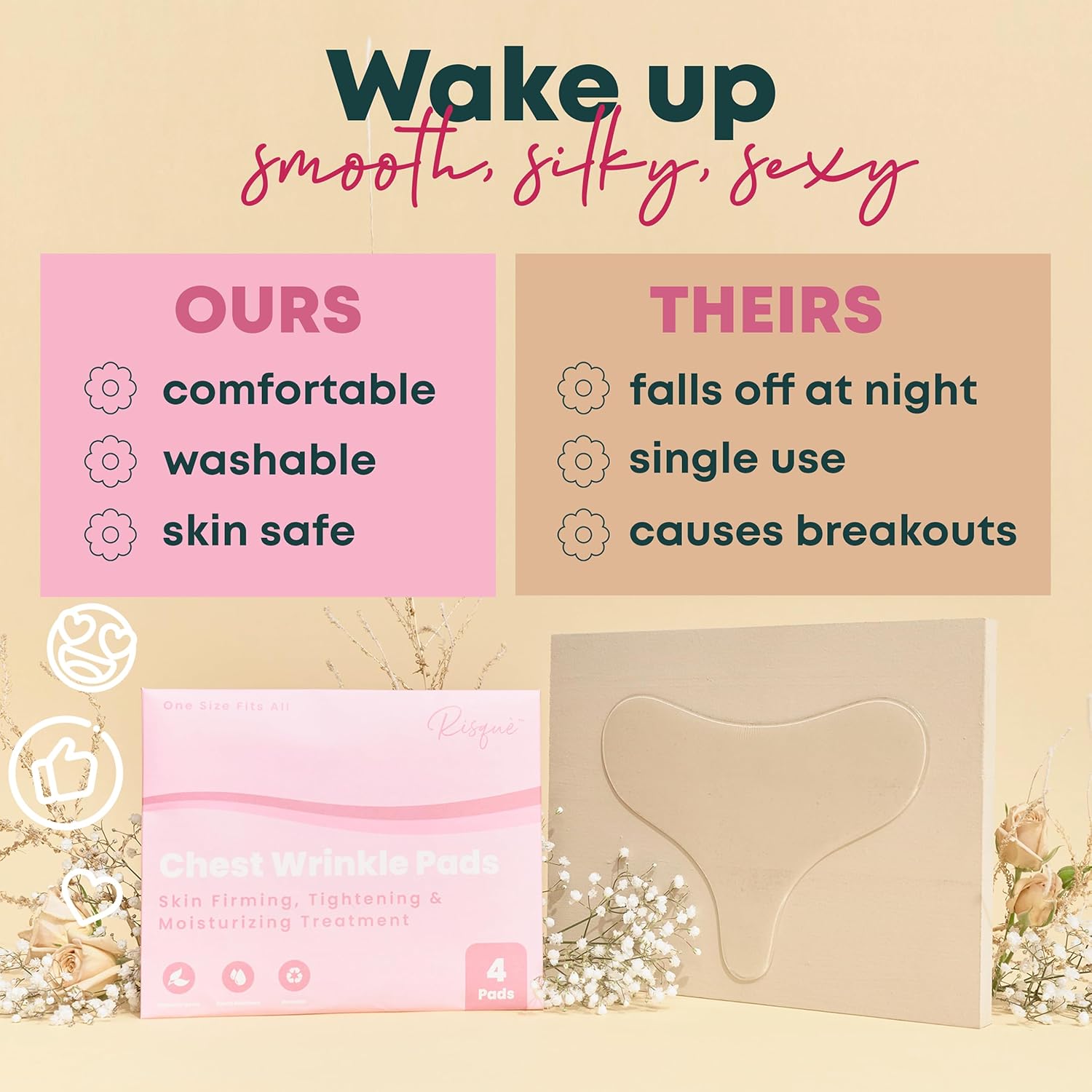 Chest Wrinkle Pads | Wrinkle Patches Reusable | Anti Wrinkle Patches | Chest Wrinkle Pillow Pads for Smoother, Youthful Skin Long-Lasting | Chest Patches for Wrinkles | Reusable Patch for Chest 4 Pack