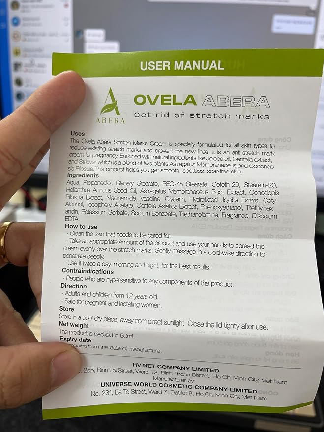 Abera Ovela Stretch Mark Cream, Stretch Marks Treatment For Pregnancy and Weight Fluctuations, Effective Treatment for Stretchmarks in All Skin Types (A. 1 Box + Ice Roller)