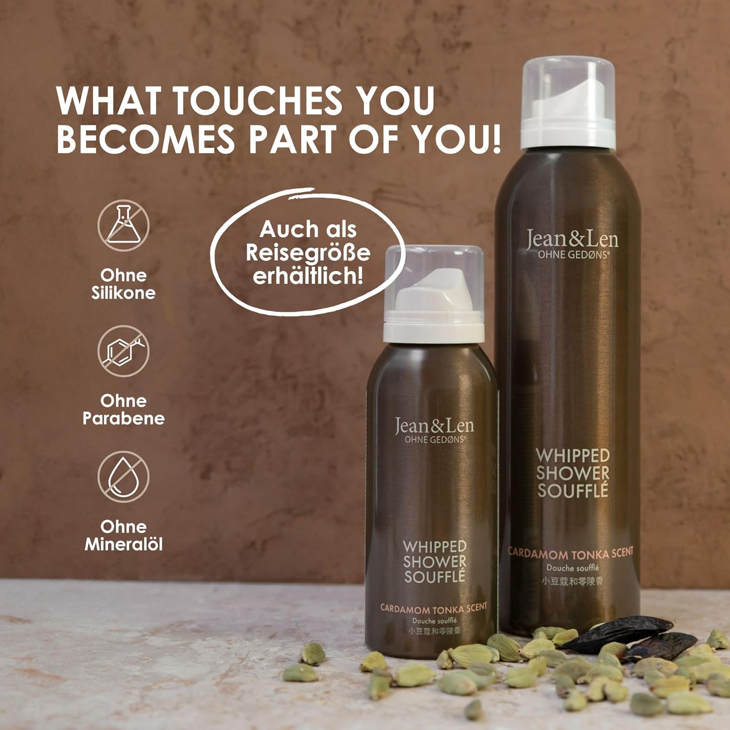 - Scope of delivery: 1 x 6.76 Fl. Oz. Jean&Len Shower Soufflé Cardamom & Tonka, with almond and jojoba oil, for a fragrant cleansing experience, for normal to dry skin, Shower Foam
