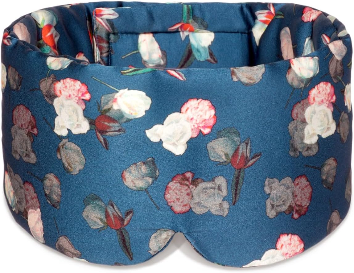 Silk Sleep Mask Soft Pressureless: 100% Mulberry Silk for Eye Skin Anti Wrinkles, Large Size for Total Blackout, Adjustable Wide Velcro Ear Cover, Print