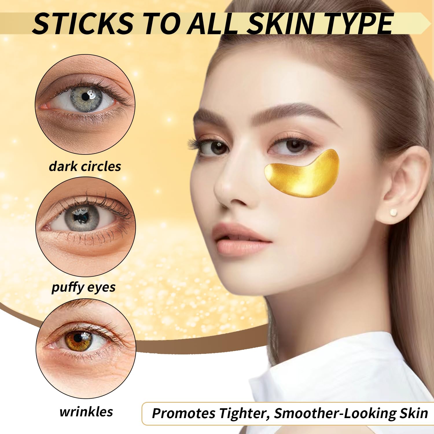 - Smooth Out Wrinkles and Fine Lines: Lack of proper rest, poor diet among many other reasons can result in wrinkles and fine lines under your eyes.Our golden eye mask can provide nourishment and hydration to stressed skin that effectively targets the delicate under eye area for both men and women.