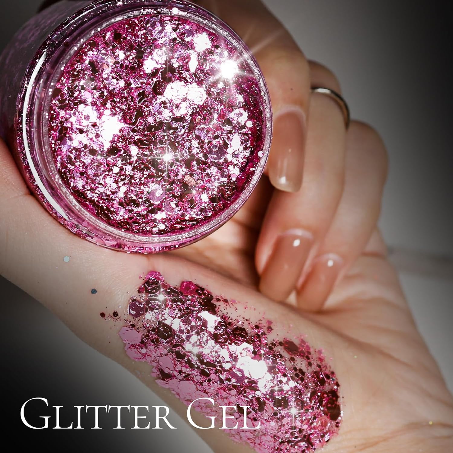 - Ideal as festival glitter: Our pink body glitter is suitable for people of all ages who want to add some fun and glamour to their makeup routine. It can be used for special events, performances, Halloween costumes, or even just for everyday wear. Whether you're a makeup enthusiast, a performer, or simply someone who loves to experiment with different looks, our glitter gel is a must-have addition to your beauty collection.