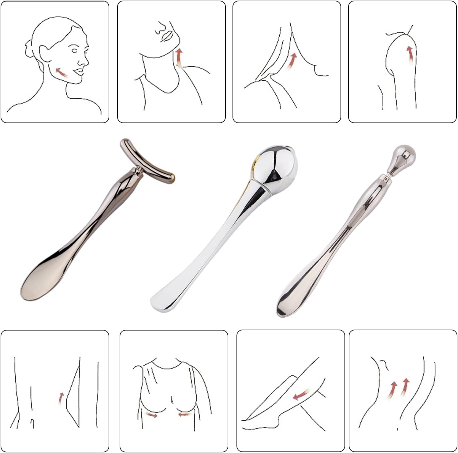 BetterJonny 3Pcs Metal Eye Cream Applicator Roller Wand Stick, Cosmetics Spoon Eye Cream Massager Wand Girls Women Facial Massager for Fatigue Relief Reduce Puffiness (Silver)