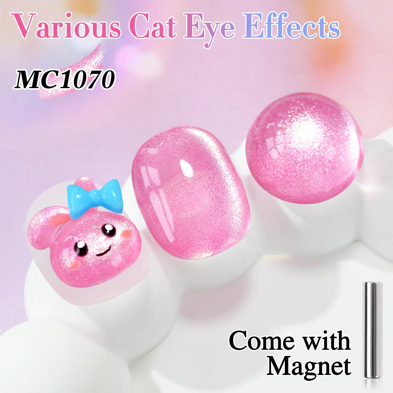 Double Rhythm 0.5 OZ Cat Eye Gel Polish with Magnet 15ML Holographic Glitter Shimmer Translucent Jelly Color Magnetic Nail Polish Salon DIY at Home (Pink-MC1070)