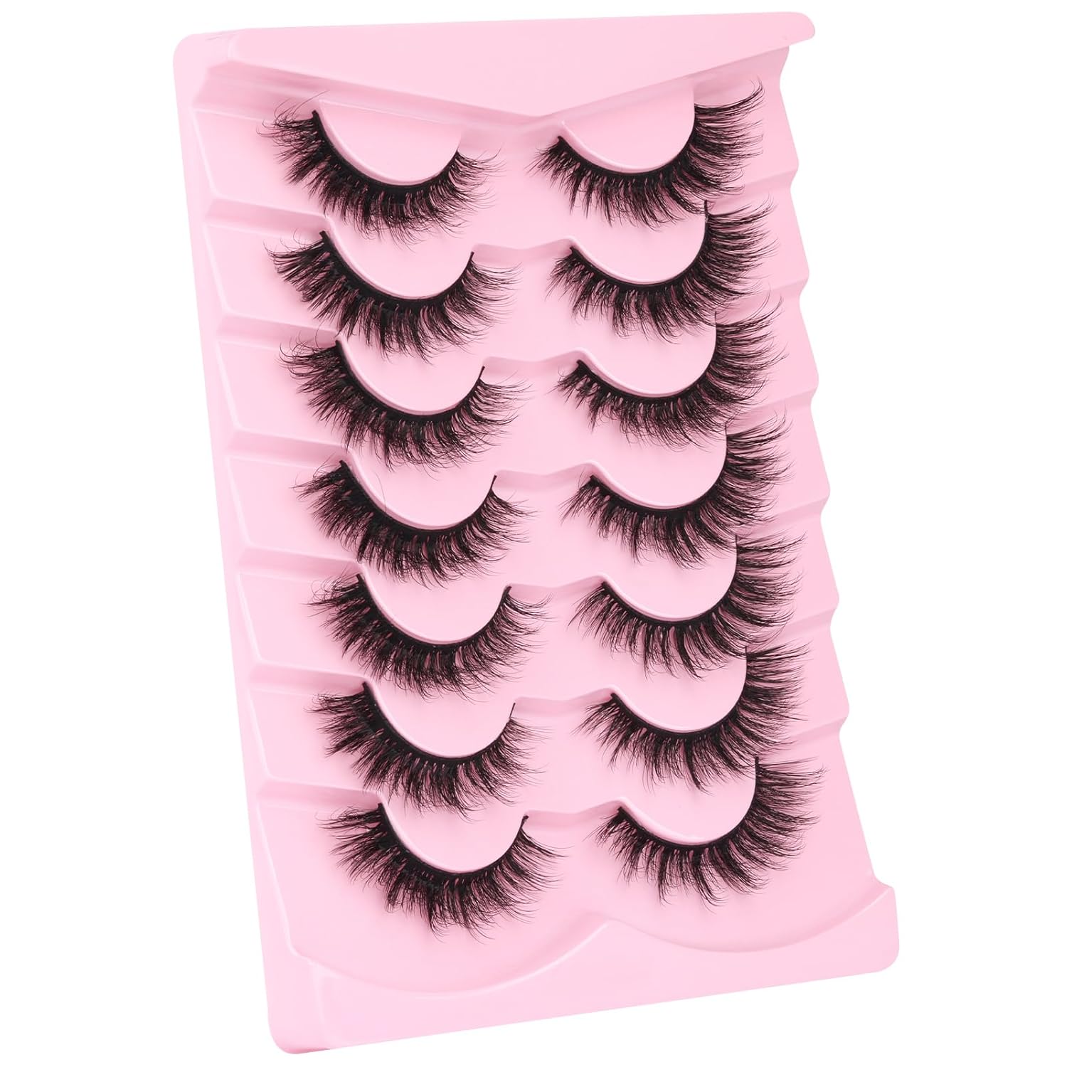 Kiromiro Lashes False Eyelashes Cat Eye Faux Mink Lashes Wispy Strip Lash 6D Volume Fake Lash Natural Look Eyelashes Pack 7 Pairs