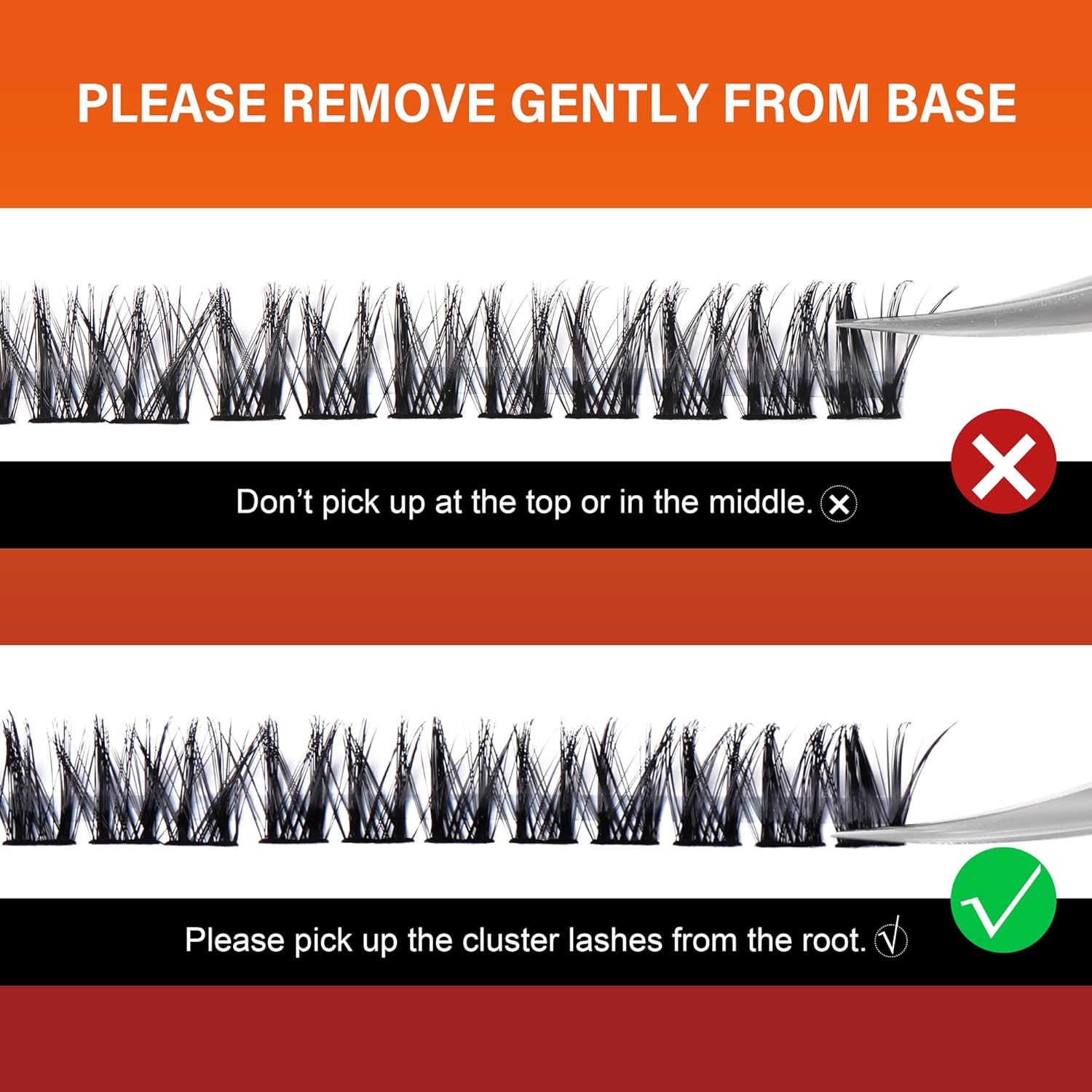 - 𝗘𝗮𝘀𝘆 𝘁𝗼 W𝗲𝗮𝗿 L𝗮𝘀𝗵𝗲𝘀 C𝗹𝘂𝘀𝘁𝗲𝗿 Apply a thin layer of eyelash adhesive to the root of natural eyelashes, gently place the eyelash cluster under the bottom of natural lashes using eyelash adhesive, and then apply a thin layer of eyelash sealant to fix the lash cluster in place and eliminate any residue