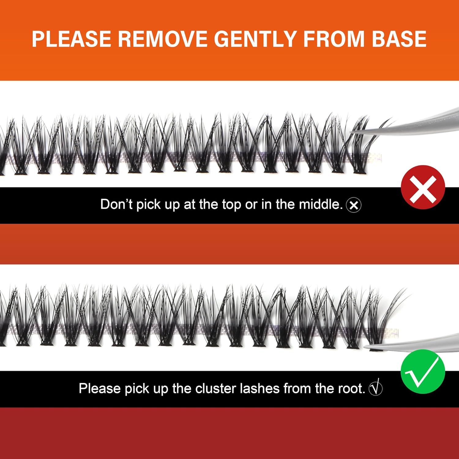 - 𝗣𝗿𝗲𝗺𝗶𝘂𝗺 𝗟𝗮𝘀𝗵 𝗘𝘅𝘁𝗲𝗻𝘀𝗶𝗼𝗻 Our eyelash clusters are made of top-grade 0.07mm synthetic fibers to create a natural and fluffy 3d faux mink lashes effect, no irritation or allergy. The 0.3mm superfine band provides a comfortable lash wearing experience. These individual eyelashes clusters do not fall apart, ensuring durability, and with proper use, they can last up to a week