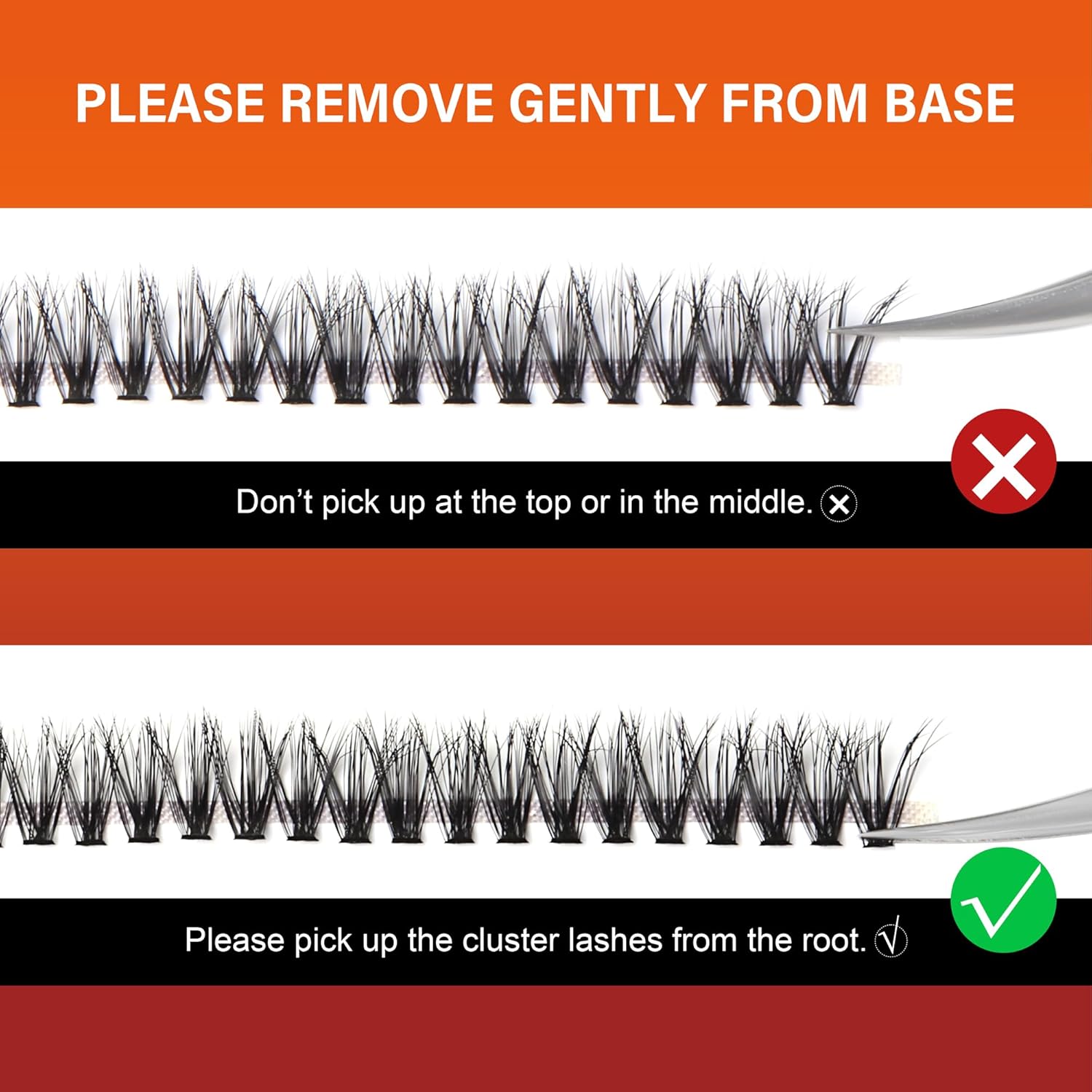 - 𝗘𝗮𝘀𝘆 𝘁𝗼 W𝗲𝗮𝗿 L𝗮𝘀𝗵𝗲𝘀 C𝗹𝘂𝘀𝘁𝗲𝗿 Apply a thin layer of eyelash adhesive to the root of natural eyelashes, gently place the eyelash cluster under the bottom of natural lashes using eyelash adhesive, and then apply a thin layer of eyelash sealant to fix the lash cluster in place and eliminate any residue