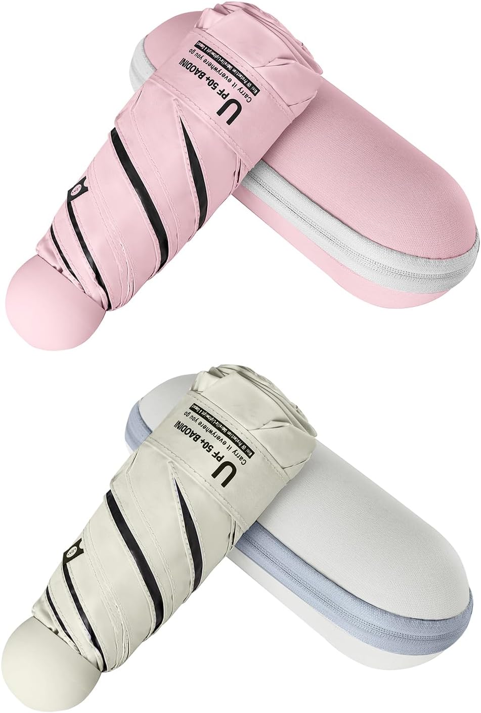 BAODINI Travel Essentials Mini Umbrella for Purse With Case Small Compact UV Sun Protection Lightweight Tiny Pocket Manual Open Close Umbrella for Women Kids and Men Fit Purse Backpack