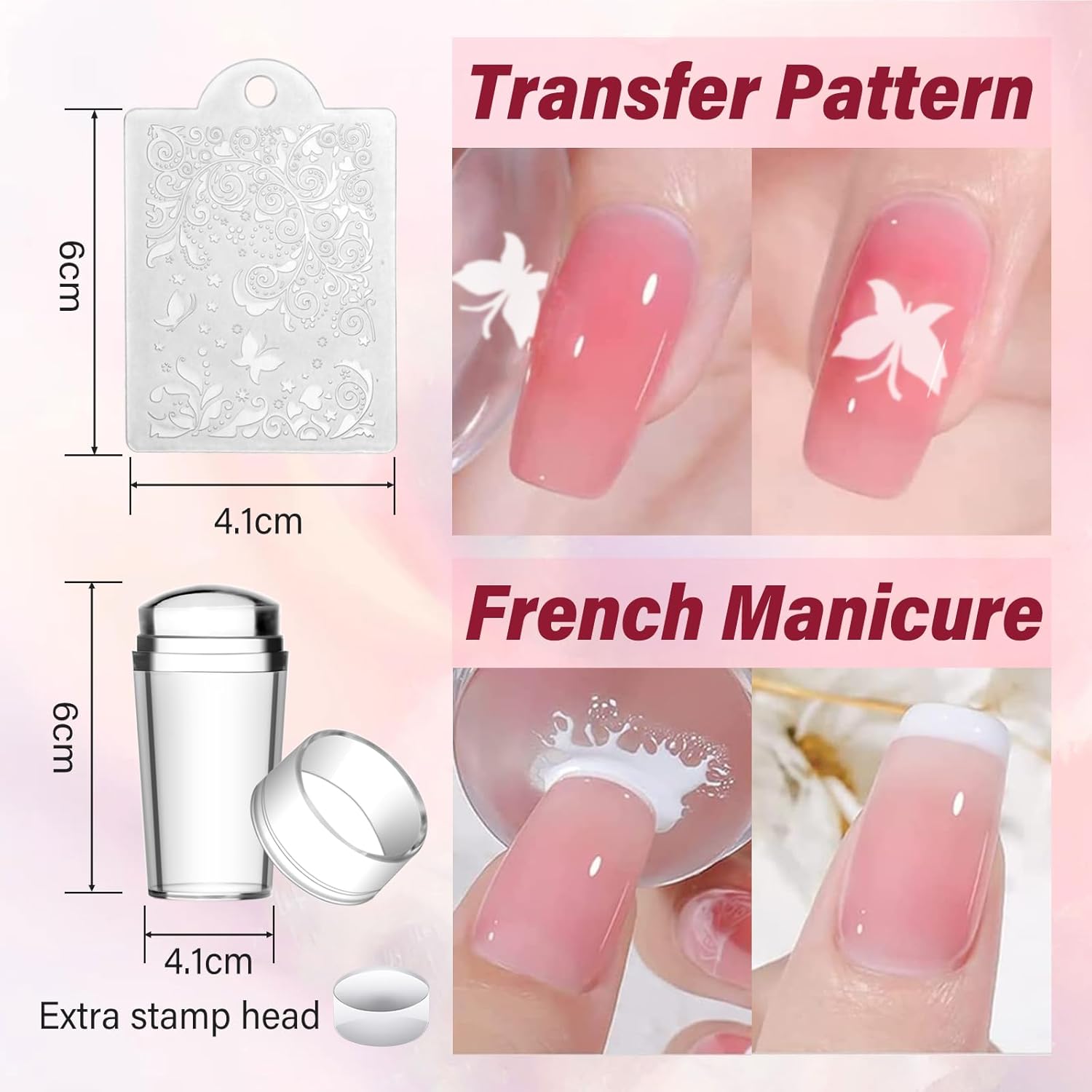 - 【Nail Art Stamper & Scraper】The silicone transparent nail stamper can help you choose the size and position of pattern clearly, and you can see the design and effect on your nail.The clear silicone stamper is flexible and molds smoothly to your nail shape for precise, effortless transfers. It creates a better effect on your nails.