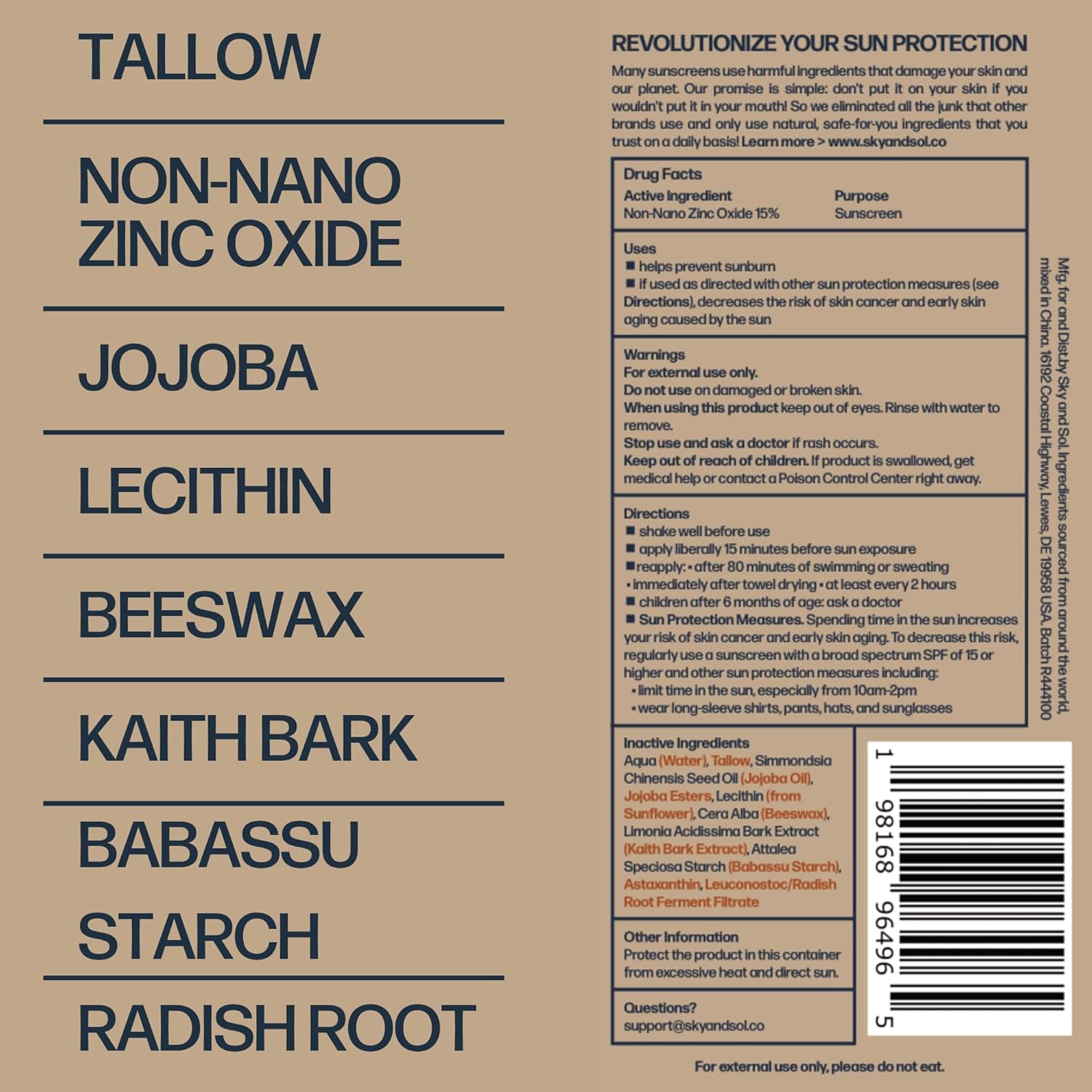 - Nourishing Skincare with 100% Grass-Fed Tallow: Tallow is rich in skin-compatible nutrients that help moisturize and protect. Sky and Sol combines effective sun protection with deeply nourishing care, making this a versatile, everyday sunscreen cream for face and body.