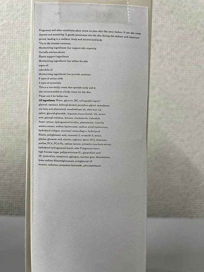 - 【Moisturizing for Dry Skin】 A body cream born from the collaboration of midwives and experienced moms. It's a fragrance-free, color-free, and gentle formula, perfect for Japanese expectant mothers. Its ease of use without the need for massage is one of its appealing features. With its high moisturizing power, it's also great as a body cream for combating dryness.