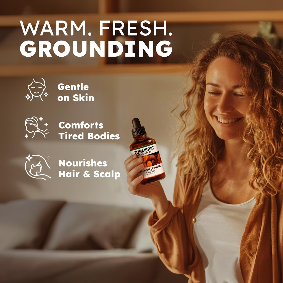 Kukka Turmeric Oil for Skin - 4 Fl Oz - Turmeric Essential Oil, Herbaceous Scent, for Face, Hair, Aromatherapy, Candle, DIY Soap Making Scents