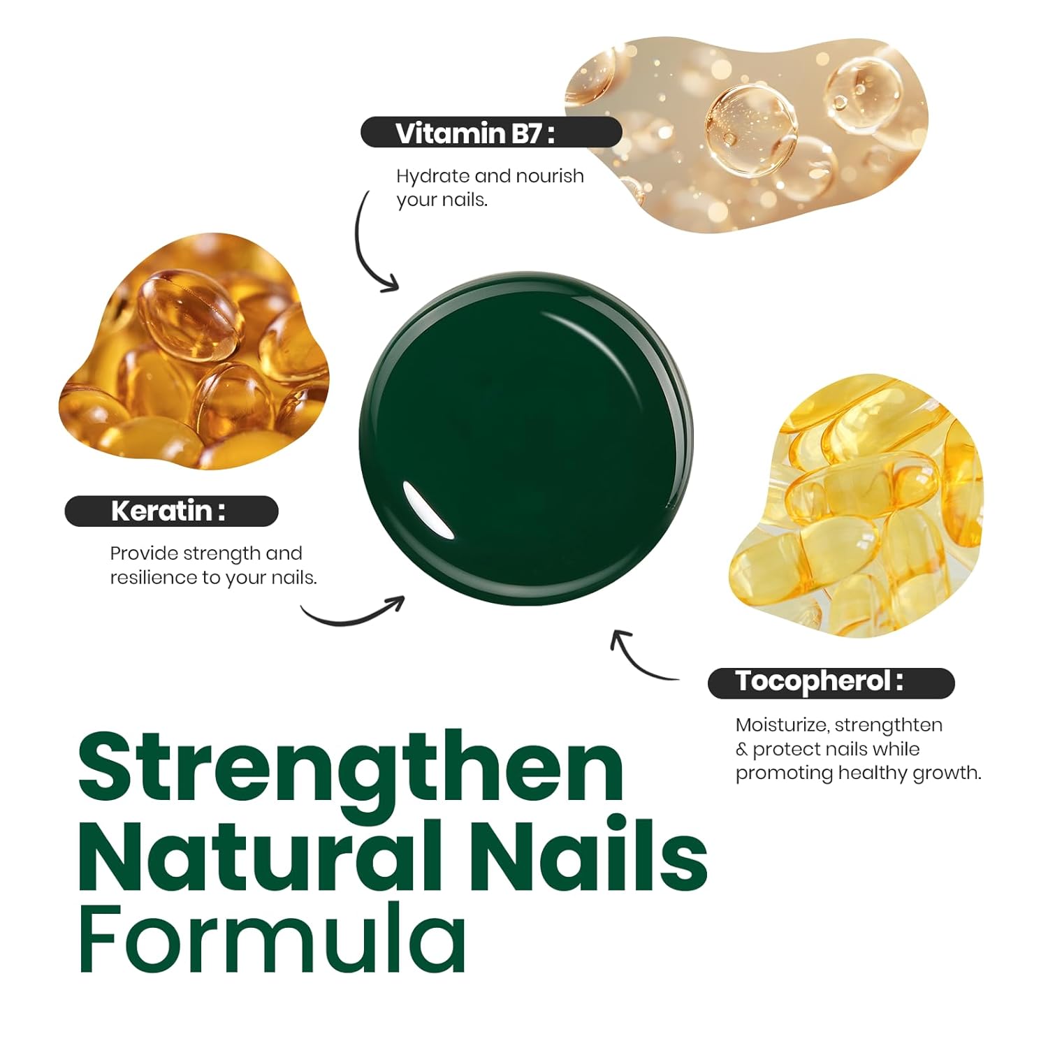 - Healthy and Harmless: Dark green nail polish is formulated with natural and harmless ingredients, low odor, can enhance nail thickness and hardness, and speed up nail recovery.
