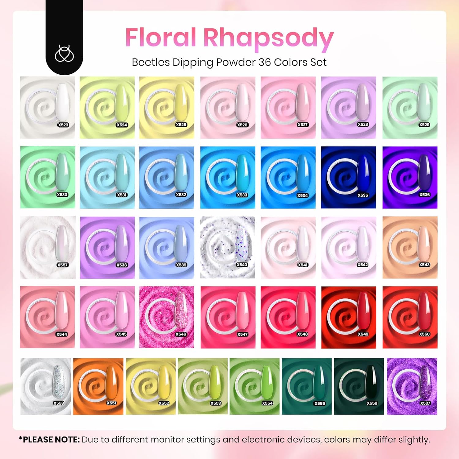 Beetles Dip Powder Nail Kit, 36 Colors Glitter Nude Pink Red Green Pastel Dipping Powder Starter Kit Quick Drying Nail Set for French Nails Art Manicure DIY Salon Gift for Women