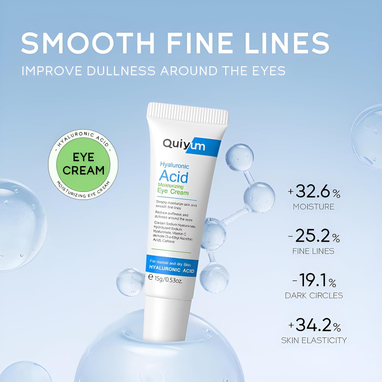 Hydrating Eye Cream, Under Eye Cream for Dark Circles & Puffiness, Hyaluronic Acid Eye Treatment Creams for Bags Under Eye, Reduce Fine Lines & Wrinkles, Anti Aging for Women 0.53oz, 2 Pack