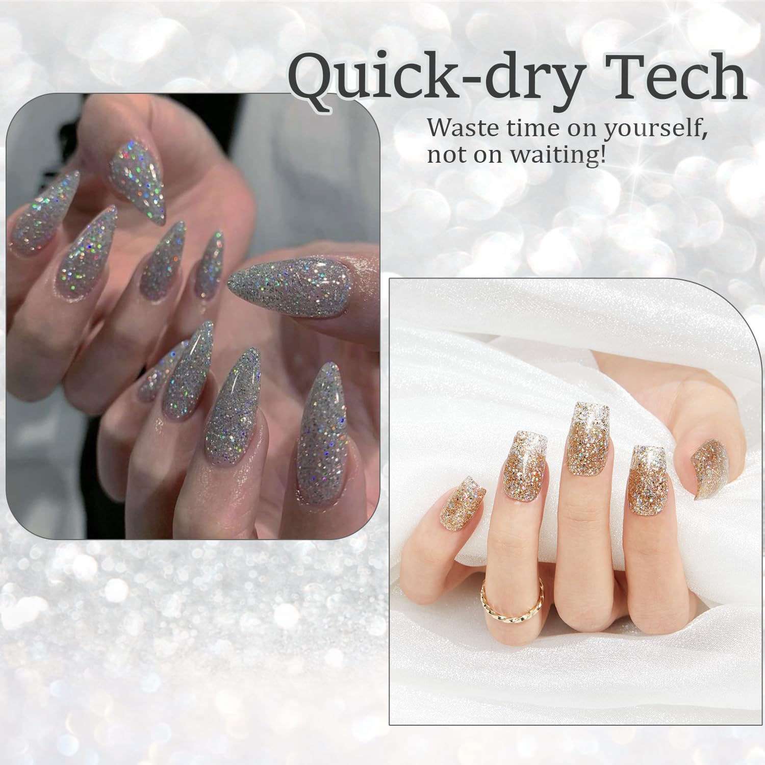 AZUREBEAUTY Nail Polish Set, 4 Colors Dazzling Gold Silver Pink Quick Dry Natural Nail with Top Coat,Professional for Nail Art DIY Manicure and Pedicure at Home
