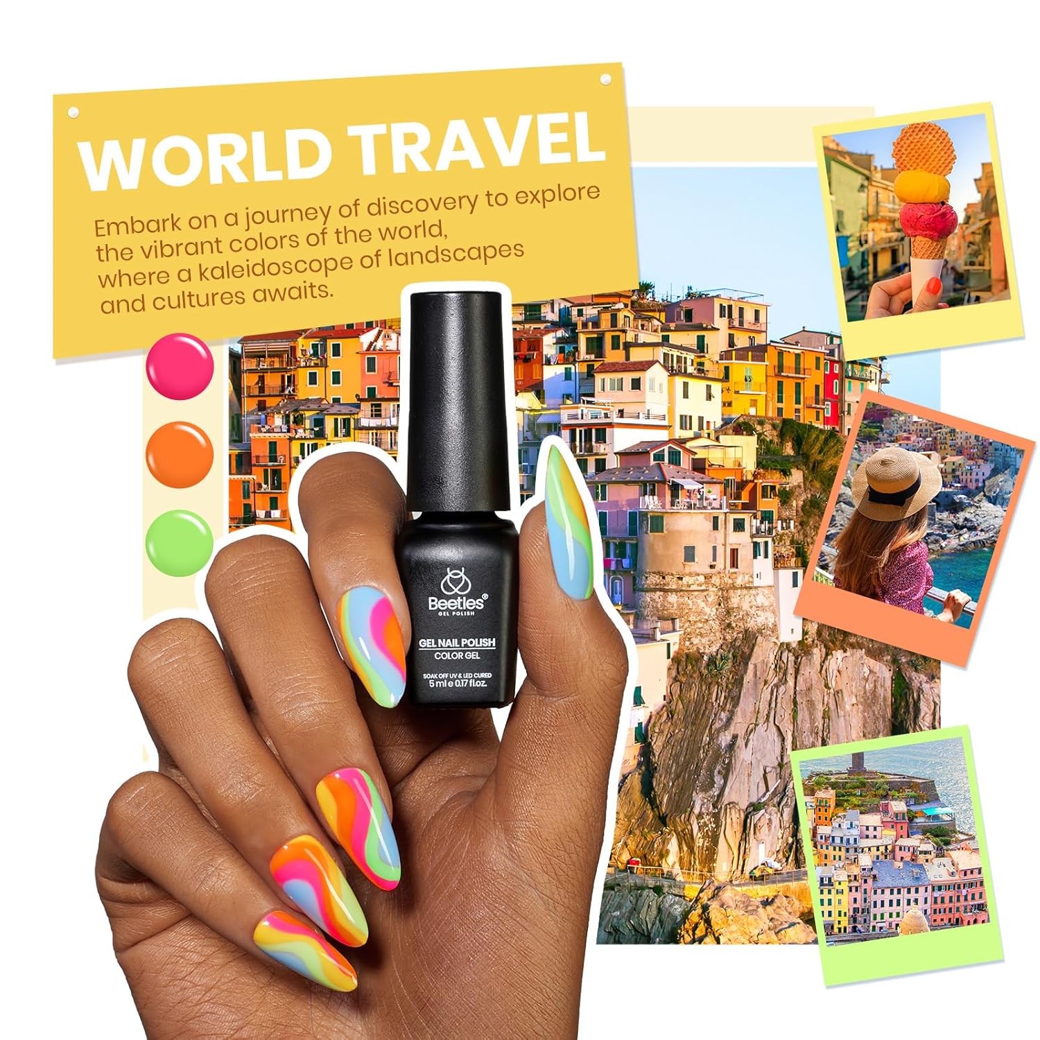 - Perfect Beauty Gift Sets for Her: These beetles gel nail polish colors that include red, black,nude, white, blue, and many other popular color cat eye gel nail polish. World Travel Collection gel nail polish can not only decorate and beautify your nails, but convey your emotions, embark on a journey of discovery to explore the vibrant colorsof the world, where a kaleidoscope of landscapes and cultures awaits.