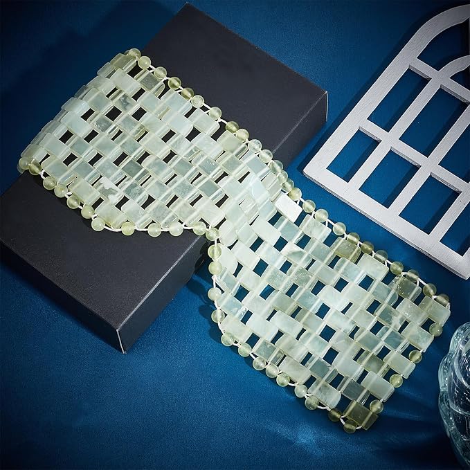 - QUALITY MATERIAL: Crafted from high-quality and natural jade material, our stone eye mask is skin-friendly. The hand-polished surface smooths the eye area, while the hand-woven construction ensures durability for long-term use.