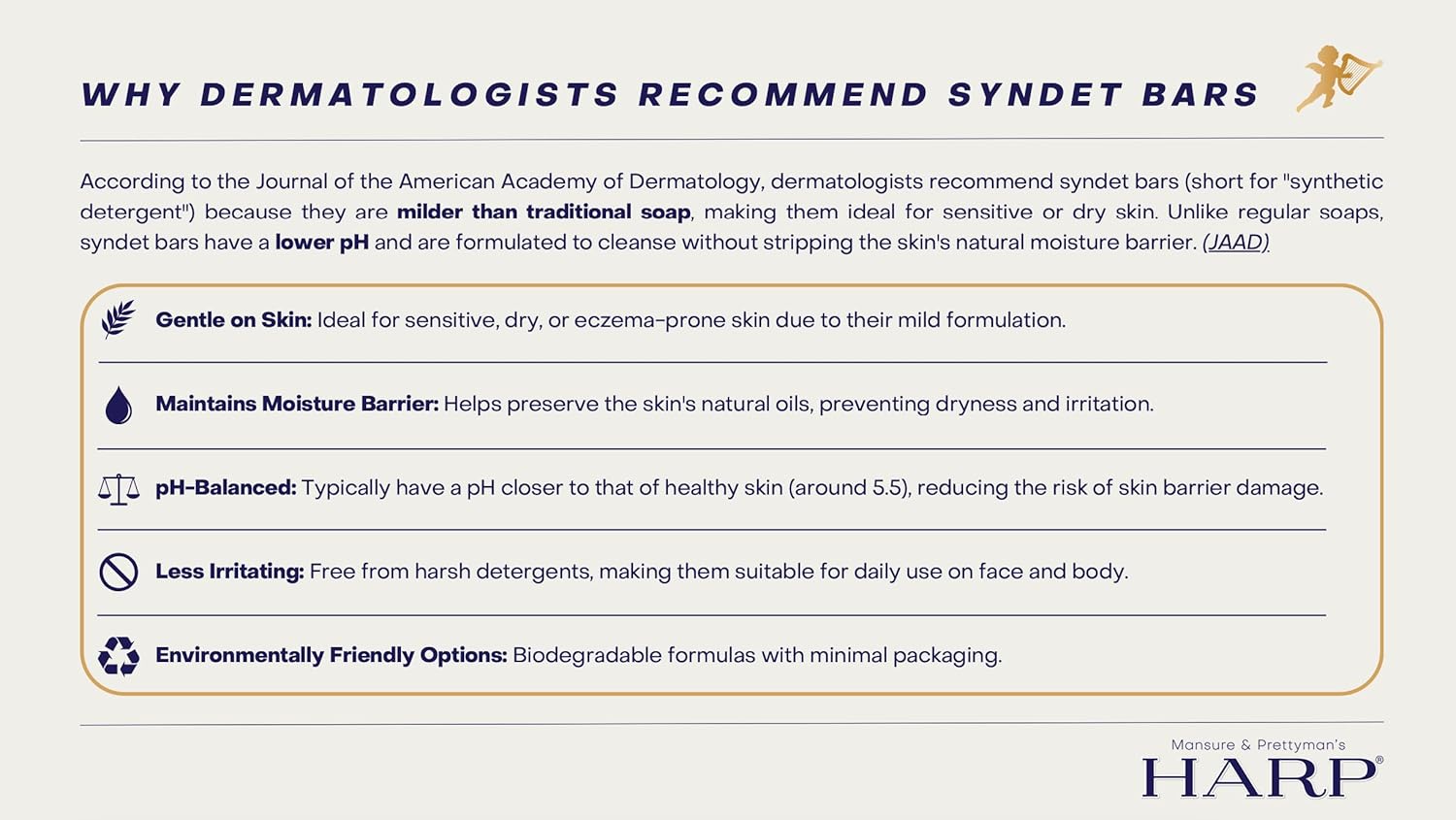 - ✅HARP has pH-Balanced (pH range 5.0 - 6.0) base cleansers that match and retain your skin's natural moisture barrier. This reduces the drying effect the majority of bar soaps cause. The reason for this is because 99% of bar soaps use a process called saponification, which requires the use of Lye, which brings the pH levels up to around 10 - causing dryness. Not HARP. Our base cleanser is Sodium Cocoyl Isethionate. (zero Lye- low pH process)