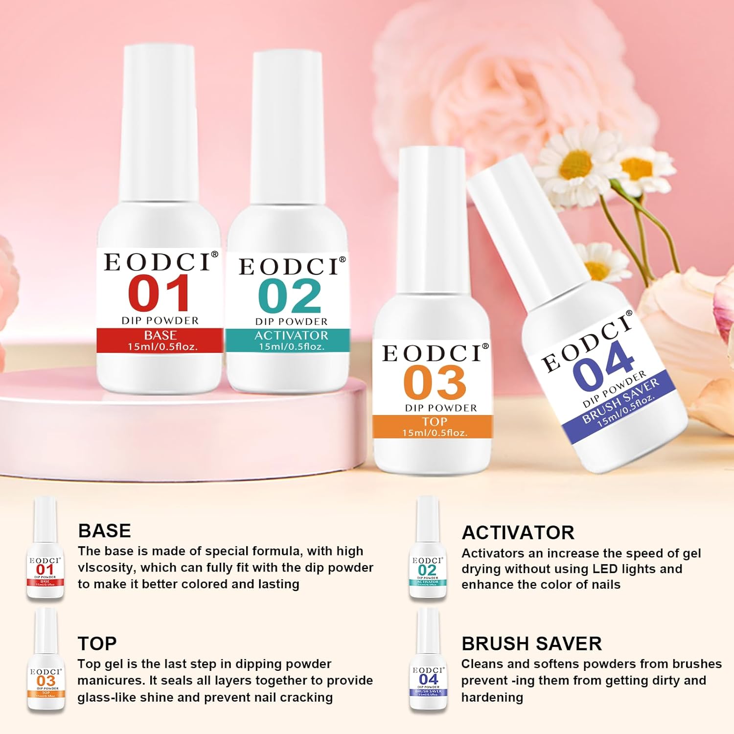 - 【No Lamp Needed】Eodci Nail Dipping Powder does not require UV/LED light to cure, is skin friendly while avoiding skin darkening and damage, safe and easy to use, suitable for beginners and professional nail salons.