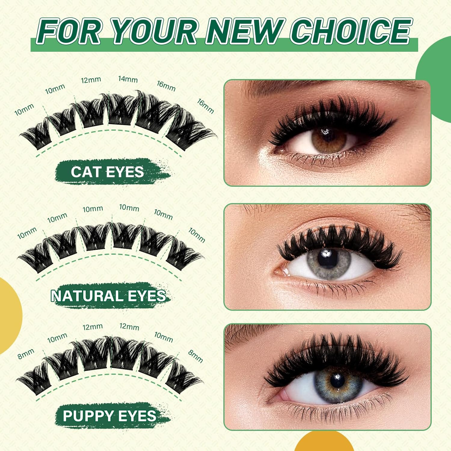 - 【144pcs High Quality Cluster Lashes】The simulated eyelash material is more realistic and will not feel plastic, comfortable and non-irritating on the eyes, allowing you to easily maintain a perfect makeup all day long.