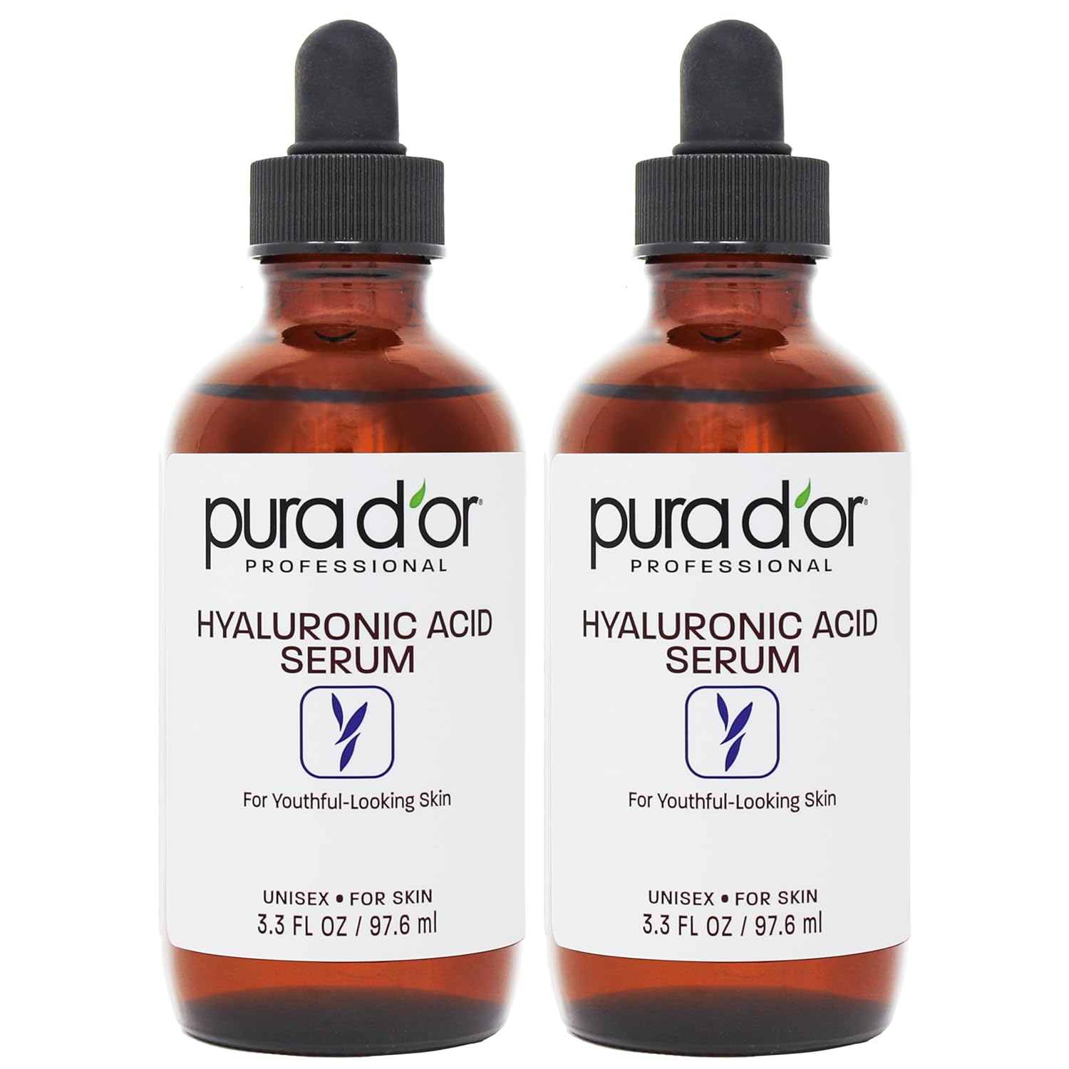 PURA D'OR Hyaluronic Acid Serum For Deep Hydration (3.3oz x2 = 6.6oz) Anti-Aging, Plumping & Moisturizing Formula For Smooth, Supple Skin - Natural Skincare Boost - Fine Lines & Wrinkle Reducer