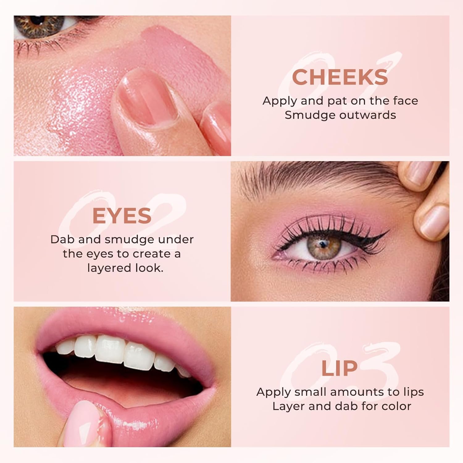 Jolilab Blush Makeup Color Changing Blush Palette Cream Blush Powder Palette Long-Lasting Hydrating Pigment High Impact Buildable Color Lightweight Smooth Finish for Eyes Cheeks(1, pink, 1)