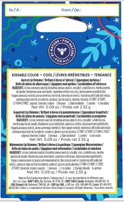 Burts Bees Kissable Colo, Apricot, Grapefruit, Watermelon Lip Shimmer Gift Set of 3 x 0.09 oz (2.55g) - 1 Count