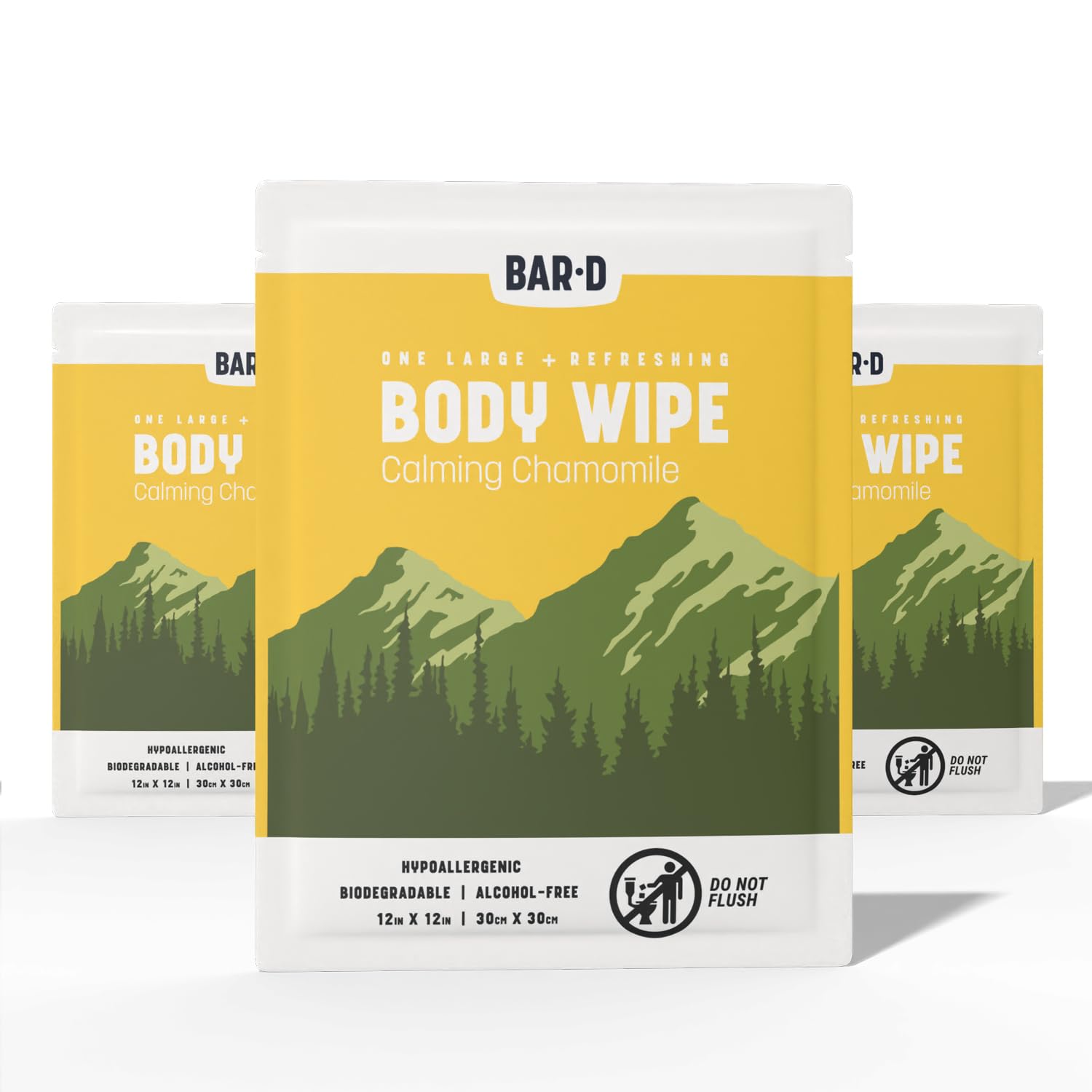 Bar-D Cleansing Face & Body Wipes for Women and Men - Individually Wrapped Biodegradable Shower Wipes with chamomile, 12x12 Inch, Pack of 20 (20 Count/Box), Chamomile scent