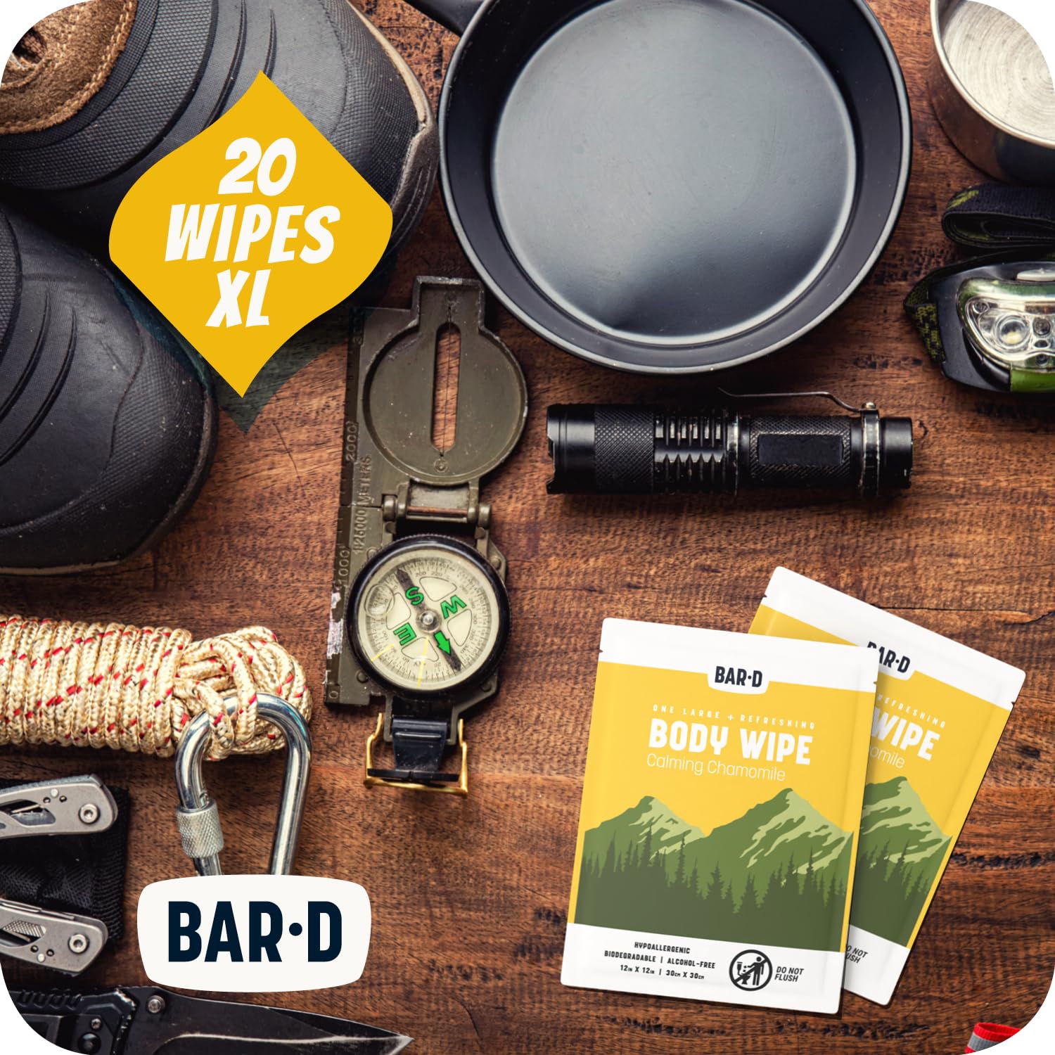 - Can't shower? Need a bath? Extra large and thick biodegradable body wipes are what you need! Wipe down your entire body. Face, armpits, undercarriage. Great travel gear, camping accessory, and a hiking must have!