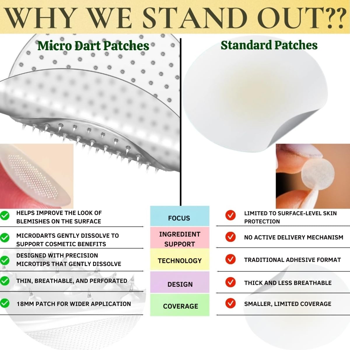 - Product Benefits : Contains hydrating and soothing ingredients that help improve the appearance of stressed or irritated skin., Infused with salicylic acid, azelaic acid, niacinamide, and willowherb extract, these cosmetic patches help visibly improve the look of blemishes and support a smoother, clearer-looking complexion., Micro Dart skincare technology gently melts into the skinβs surface to support cosmetic benefits and elevate your skincare routine., The easy-peel perforated sheet ensures hassle-free application every time., The patches act as a protective barrier, covering blemishes to help reduce exposure to dirt and pollution - supporting skin that looks calmer and more balanced., These cosmetic patches help visibly reduce the look of early blemishes, supporting a clearer-looking complexion with continued use. Contains hydrating and soothing ingredients that help improve the appearance of stressed or irritated skin., Infused with salicylic acid, azelaic acid, niacinamide, and willowherb extract, these cosmetic patches help visiβ¦ See more