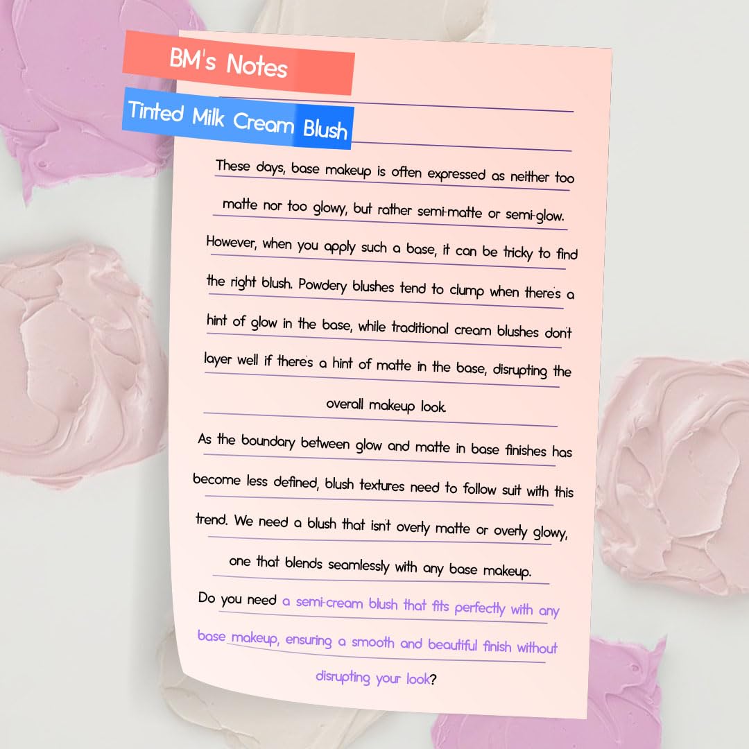 HOLIKA HOLIKA Colored Milk Cream Blush 01 CUTIE PIE: Glowing, Natural Makeup, Glossy Finish, Soft, Creamy Dough like texture, Shimmer, Radiant, Plumping, Cheek, Lightweight, Clean, Buildable