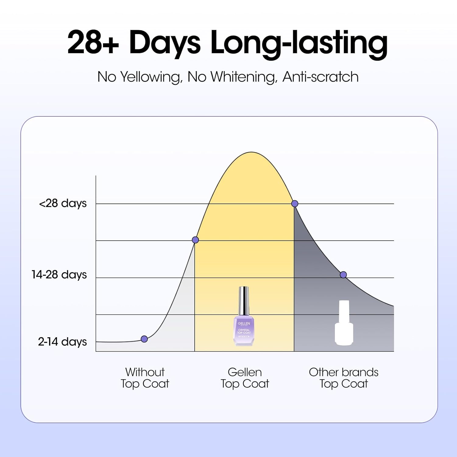 Gellen Crystal Base and Top Coat, 18ml Anti-scratch Nail Polish, Soak Off UV Light Cured Gel Top Coat, Salon Gel Polish