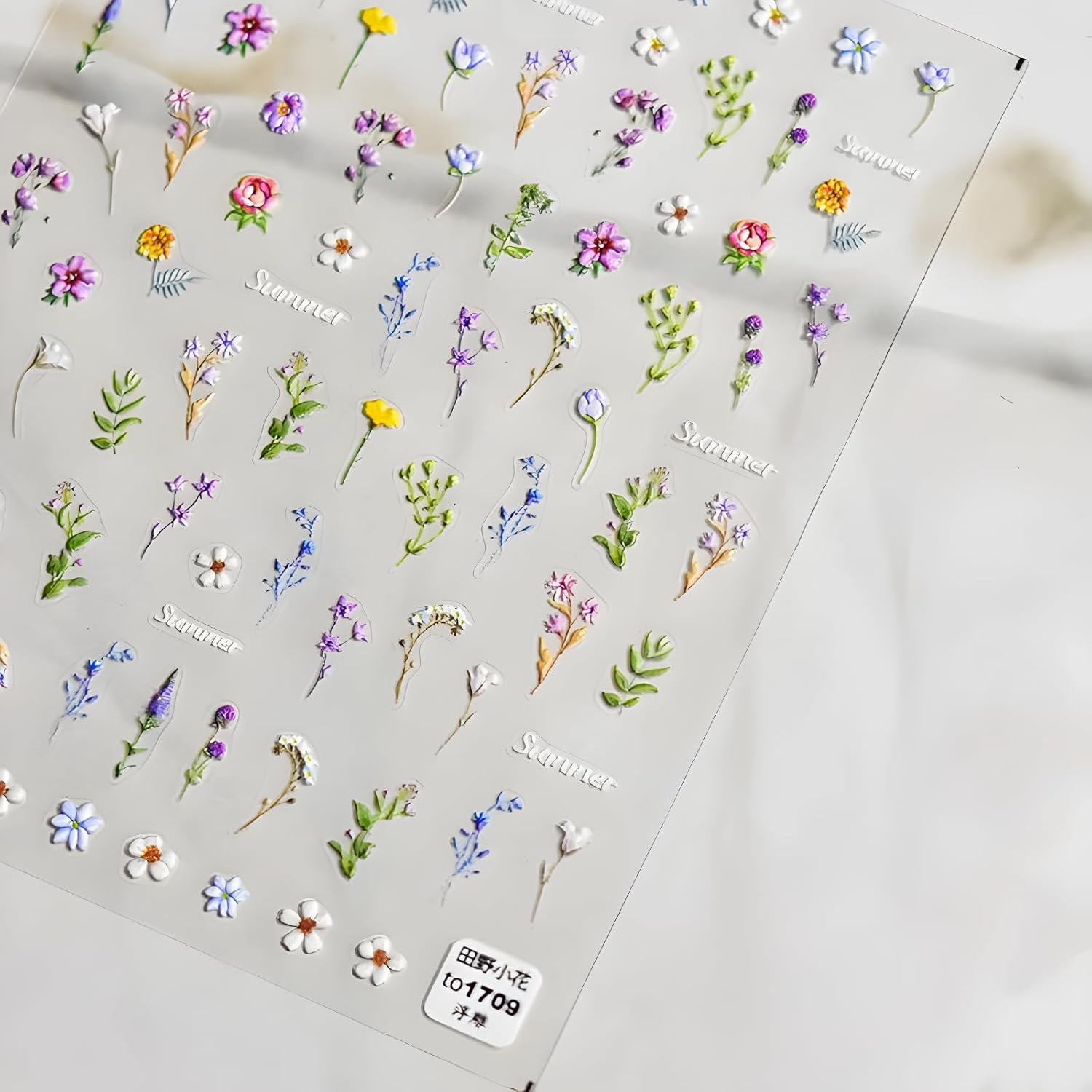 Flower Nail Art Stickers Decals 5D Embossed Self Adhesive Flower Nail Stickers for Nail Art Spring Summer Nail Decals Colorful Floral Nail Supplies Decoration for Women and Girls 2 Sheets