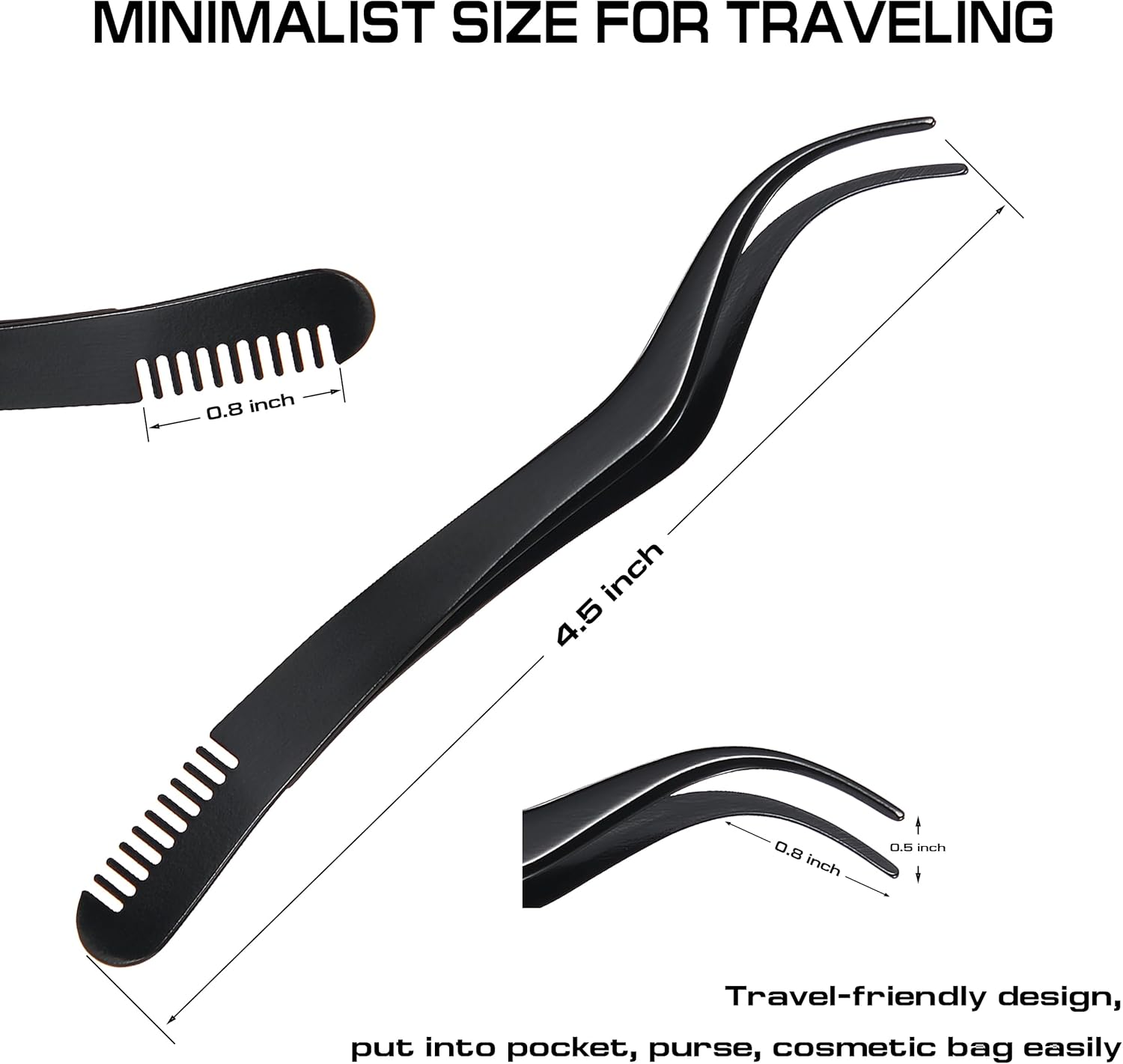 2 in 1 Lash Extension Tweezers with Comb, Stainless Steel Elbow Eyelash Extension Tweezers, Eyelash Tweezers for Lash Extensions, Precise Eyebrow Tweezers Tool for DIY False Eyelashes Clusters, Black